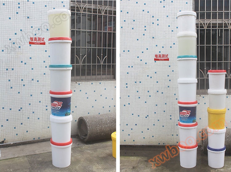 Ta tre prover, injicera den nominella kapaciteten av vatten respektive och täcka tätt, kapaciteten är inte större än 11L fat, fallhöjden är 1,5 m; kapaciteten är större än 11L fat, fallhöjden är 1,2 m, när fallet gör provets fat botten närmare den vertikala marken, den nedre parallella marken på fat sidan träffar cementplattan, varje prov föll 3 gånger i rad, kontrollera testfall, tillåta att det finns liten mängd läckage när det träffas.