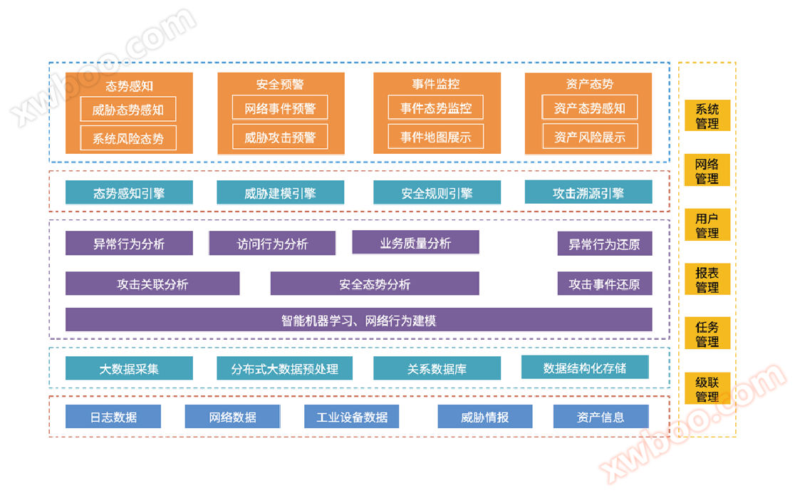 Individualisering av den globala situationen:Med omfattande situationsuppfattning, tillgångssituationsuppfattning, varningssituationsuppfattning och hotsituationsuppfattning fyra moduler, fullständig visualisering av information. Datavisningsformer och gränssnittslayout kan anpassas till fokus för att ge användaren en tydlig översikt över säkerhetssituationen.