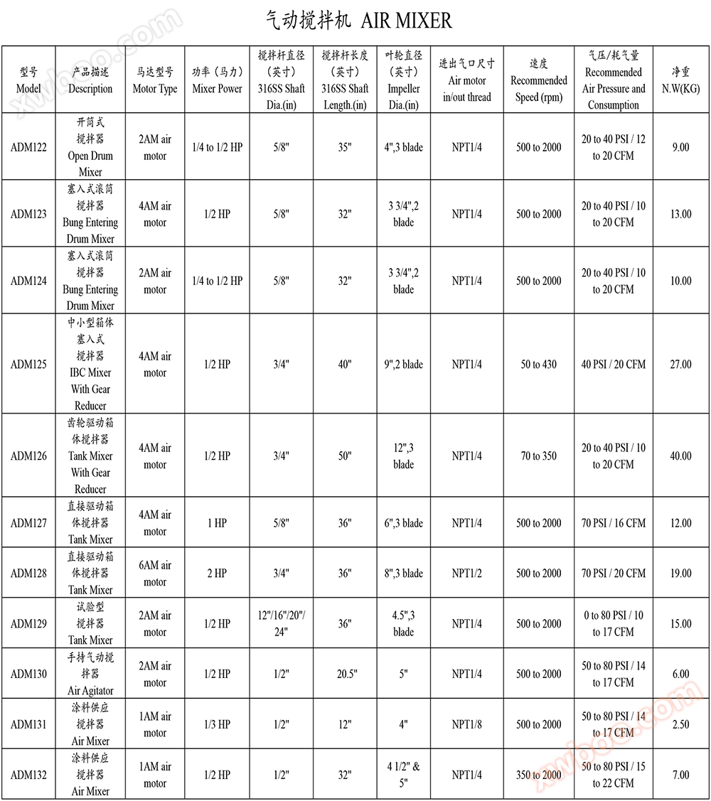 Tank pneumatisk blandare ADM127 som Dongmoxin huvudprodukt pneumatisk blandare, inklusive öppna, plugga, tank, handhållna, mikro, dubbla hjul, rostfri